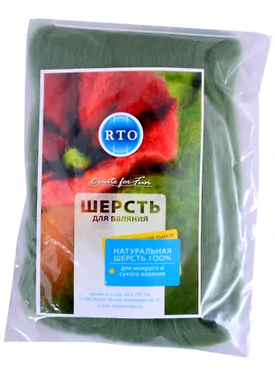 Шерсть RTO не линяет при валянии и последующей стирке, легко расчесывается и разделяется на пряди. Готовые изделия из шерсти RTO хорошо поддаются покраске и тонированию. Благодаря удобной упаковке можно рассмотреть шерсть внимательнее и убедится в ее качестве, а также подобрать необходимый цвет из широкой цветовой гаммы.
