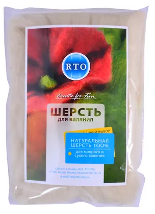 Шерсть RTO не линяет при валянии и последующей стирке, легко расчесывается и разделяется на пряди. Готовые изделия из шерсти RTO хорошо поддаются покраске и тонированию. Благодаря удобной упаковке можно рассмотреть шерсть внимательнее и убедится в ее качестве, а также подобрать необходимый цвет из широкой цветовой гаммы.
