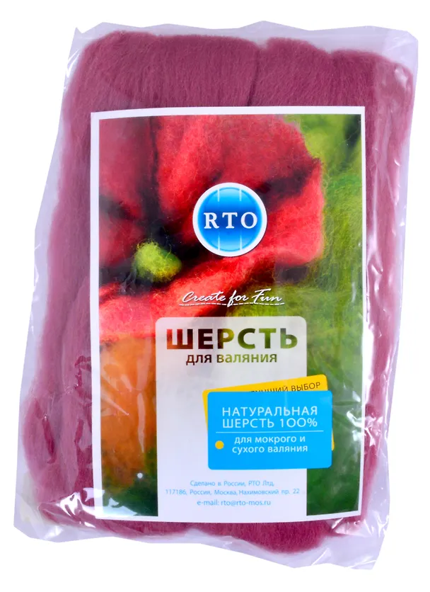 Шерсть RTO не линяет при валянии и последующей стирке, легко расчесывается и разделяется на пряди. Готовые изделия из шерсти RTO хорошо поддаются покраске и тонированию. Благодаря удобной упаковке можно рассмотреть шерсть внимательнее и убедится в ее качестве, а также подобрать необходимый цвет из широкой цветовой гаммы.
