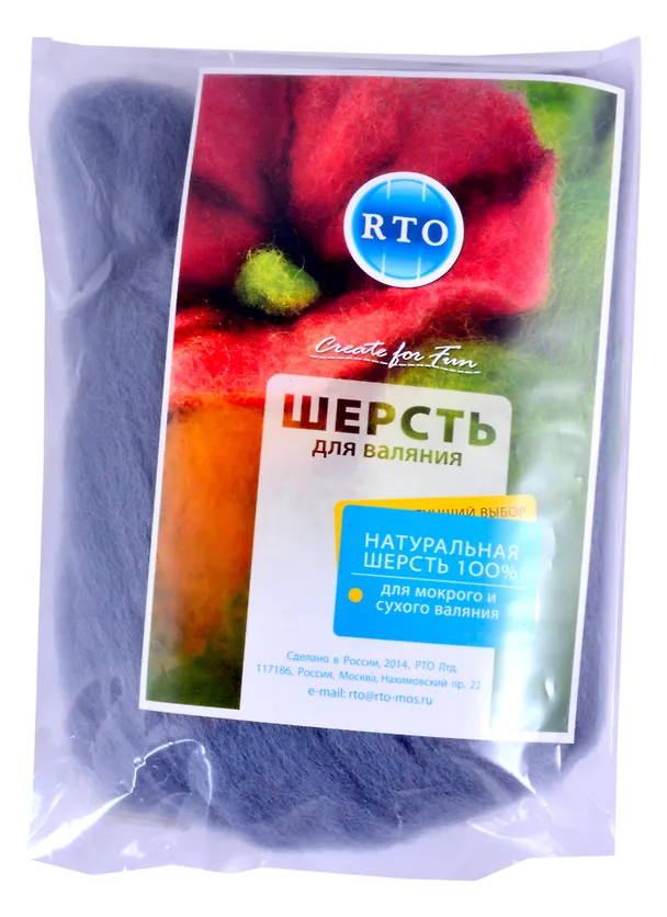 Шерсть RTO не линяет при валянии и последующей стирке, легко расчесывается и разделяется на пряди. Готовые изделия из шерсти RTO хорошо поддаются покраске и тонированию. Благодаря удобной упаковке можно рассмотреть шерсть внимательнее и убедится в ее качестве, а также подобрать необходимый цвет из широкой цветовой гаммы.