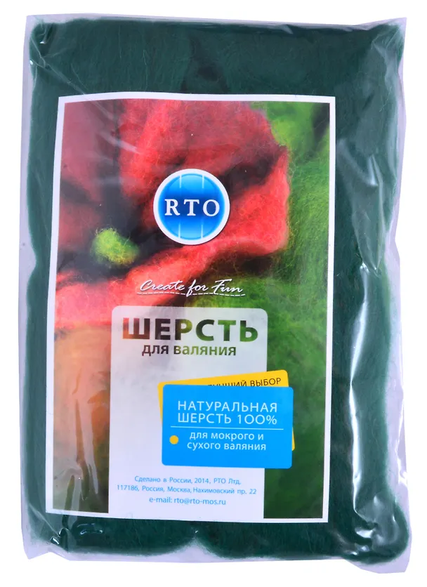 Шерсть RTO не линяет при валянии и последующей стирке, легко расчесывается и разделяется на пряди. Готовые изделия из шерсти RTO хорошо поддаются покраске и тонированию. Благодаря удобной упаковке можно рассмотреть шерсть внимательнее и убедится в ее качестве, а также подобрать необходимый цвет из широкой цветовой гаммы.