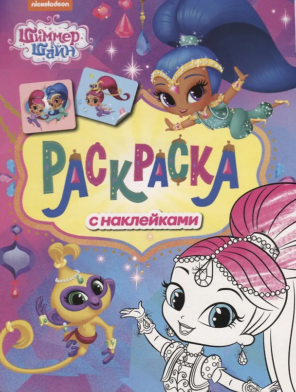 Черно-белая раскраска по мотивам нового американского мультсериала «Шиммер и Шайн» (Shimmer and Shine), на каждую страницу которой можно приклеить подходящую наклейку в качестве образца для раскрашивания. Оставшимися наклейками можно украсить блокноты, тетради, открытки.