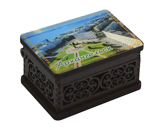 Шкатулка Архангельск малая резная с заливкой смола Достопримечательности города вид 3 (9,5 x 6,5 x 5,5 см) (хдф)