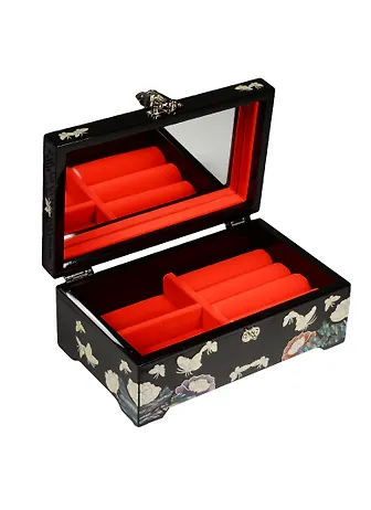 / на крышке имеется зеркало, удобно надевать с помощью него серьги