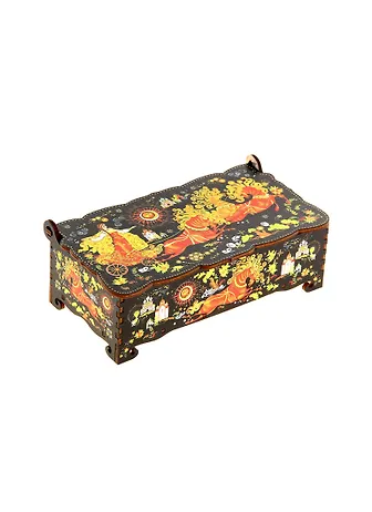 Шкатулка дерево Палех кони (5х17х8) (1038766)