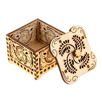 Шкатулка дерево светлая с темными резными элементами (10х14х5) (1038785)