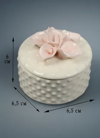 Шкатулка фарфор белая с розовыми цветами (6 см) (43834)