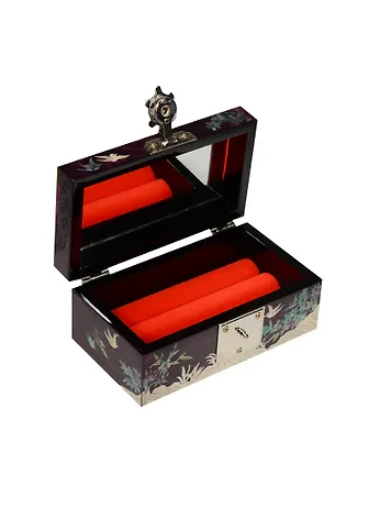 Шкатулка фиолетовая Птицы на ветке (перламутр) (13,5х7,5х5,5) (UHIL-14B)