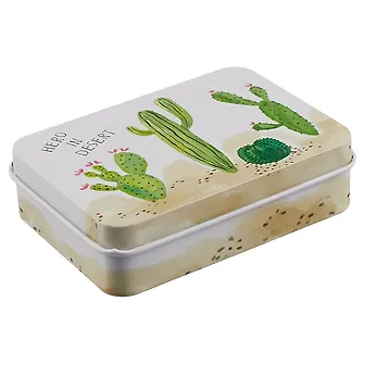 В металлическую коробочку с кактусами вы сможете положить разные полезные мелочи – пару любимых конфет, украшения или памятные билеты в кино.