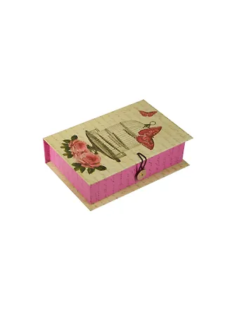 Шкатулка-книга с пуговицей картон Клетка с бабочками (18х12х5) (36516)