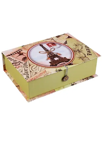 Шкатулка-книга с пуговицей картон M Эйфелева башня с бантом (20х13,5х6см) (12-Kairui-BB2017-02