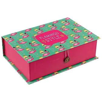 Шкатулка-книга с пуговицей картон M Фламинго и ананас с усами (20х13,5х6см) (12-Kairui-BB2017-
