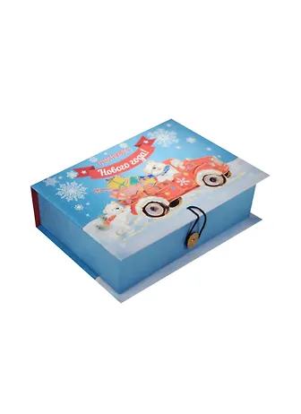 Шкатулка-книга с пуговицей картон Медвежата и автомобиль M (20х14х6) (39256)
