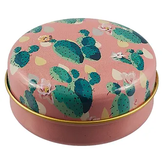 Шкатулка выполнена из жести и потому с ней стоит быть поосторожней, так как можно её повредить или деформировать случайно. К сожалению выбрать цвет шкатулки нельзя. Мне пришла в розовую клетку с кактусом в центре. Но в целом расцветка норм. Размер, как в описании - компактная. Хорошо подойдёт для разных мелочей таких как скрепки, кнопки, резинки либо для ювелирных мелочей. Для браслетов маловато будет. В интерьере смотрится очень мило. Рекомендую.
