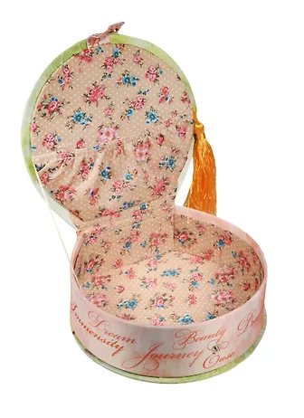 Шкатулка круглая с кисточкой текстиль Бабочки (17х16х5) (40945)