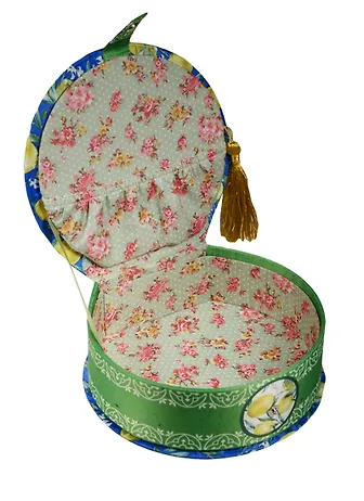 Шкатулка круглая с кисточкой текстиль Лимоны (17х16х5) (40947)