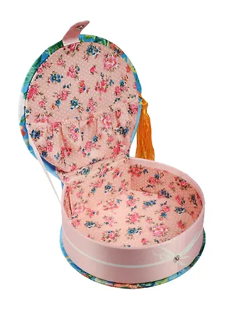 Шкатулка круглая с кисточкой текстиль Прекрасные цветы (17х16х5) (40946)
