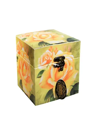 Шкатулка квадратная дерево Желтая роза (14х12х12) (456895)