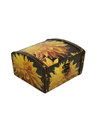 Шкатулка-сундучок дерево и искусственная кожа Желтый георгин (13,5х15х9)