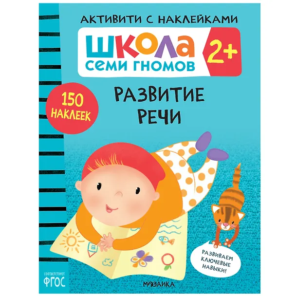 Книга «Развитие речи 2+» из серии «Школа Семи Гномов. Активити с наклейками» предназначена для развития и тренировки грамотной речи у детей от 2 до 3 лет.