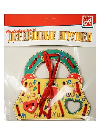 Шнуровка сумочка Алфавит (Д494а) (сумочка+замочек+сердечко+шнурок) (3+) (упаковка)
