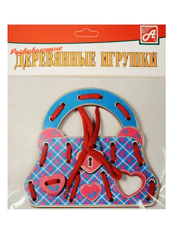 Шнуровка сумочка Клетчатый узор (Д500а) (сумочка+замочек+сердечко+шнурок) (3+) (упаковка)