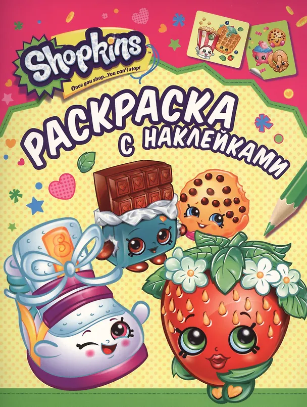 Черно-белая раскраска по мотивам мультика Shopkins, на каждую страницу которой можно приклеить подходящую наклейку в качестве образца для раскрашивания. Оставшимися наклейками можно украсить блокноты, тетради, открытки!