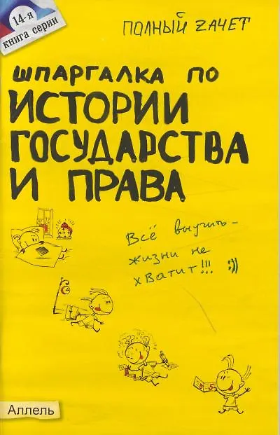 Все выучить - жизни не хватит, а экзамен сдать надо. Это готовая «шпора», написанная реальными преподами. Здесь найдешь все необходимое по Истории государства и права России, а остальное - дело техники. Ни пуха, ни пера!