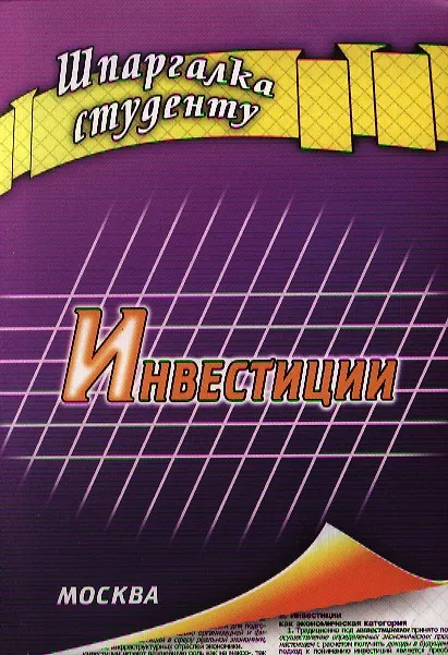Шпаргалка студенту. Инвестиции