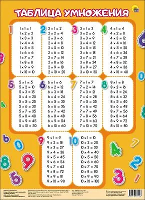 Шпаргалки для малышей. Таблица умножения (вертикальная)