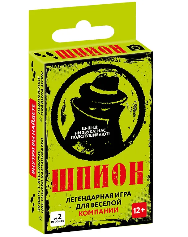 Раскройте в себе талант к шпионажу! Перед вами стоит чрезвычайно важная миссия - расследовать территорию противника и рассказать об этом своей команде, но будьте внимательны, ведь вас могут подслушивать! Миссия под угрозой, но мы знаем, что вы справитесь! Тяните карту и показывайте то, что на ней нарисовано, другим игрокам, не издав ни единого звука. Игроки должны угадать столько фактов, сколько указывает номер в углу карточки. Вперед! В коробке вы найдете 40 карточек и подробные правила игры.