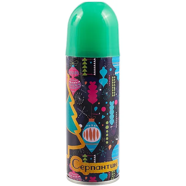 Синтетический серпантин в спрее для новогоднего декорирования (зеленый) (5х17) (250 мл)