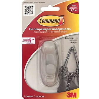 Система крепления ЗМ Command Крючок металлик, легкоудаляемый средний 1 шт