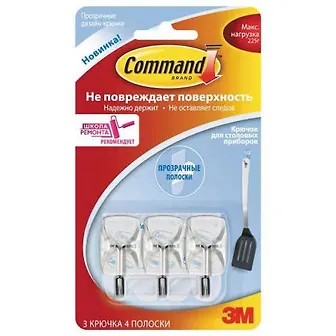 Система крепления ЗМ Command Легкоудаляемый крючок д/стол. приборов 3шт. 17067CLR