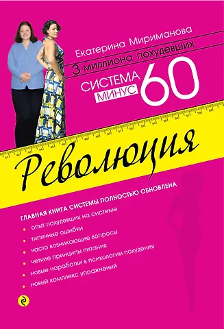Система минус 60 Революция - новая книга автора, написанная с учетом опыта, который Екатерина Мириманова накопила за те пять лет, что прошли с момента выхода предыдущей книги. Много новых психологических моментов, обновлен комплекс упражнений, в него включены многие современные танцевальные движения. То что касается питания- автор попыталась полностью изменить систему питания, она стала менее жесткой и на легче перейти. У меня есть первая книга, и я по ней похудела, но решила купить и вторую- интерсно стало. что там. Не разочаровалась, тут все проще и понятней.