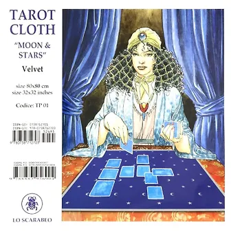 Скатерть из бархата глубокого синего цвета с классическим рисунком Луны и звёзд станет отличным помощником для предсказателя, мага и эзотерика. Ненавязчивый фон не будет отвлекать гадателя от самого процесса, зато отлично подойдет для создания атмосферы таинственности и духовной связи с небесами. Подобный аксессуар имеет также чисто практическое значение, ведь скатерть отсекает земные энергии и внешние воздействия. Она помогает гадателю тратить меньше энергии на духовную связь, получать более точные результаты и не отвлекаться на все постороннее. Скатерть стандартный квадратной формы очень удобна для транспортировки, поэтому маг может осуществлять гадание даже на выезде. Все символы на скате