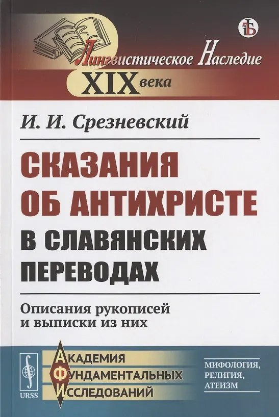 Предлагаемая читателю книга известного отечественного этнографа, филолога-слависта И.И. Срезневского (1812-1880) посвящена исследованию сказаний об антихристе, имеющихся в различных славянских переводах. Автор проводит подробный разбор сочинения исследователя древнерусской литературы К.И. Невоструева "Слово св. Ипполита об антихристе в славянском переводе по Чудовскому списку XII века", приводит описание древних славянских рукописей (московской, сербо-болгарской, люблянской и т.д.), содержащих сказания об антихристе. Книга рекомендуется историкам, лингвистам, религиоведам, всем заинтересованным читателям.