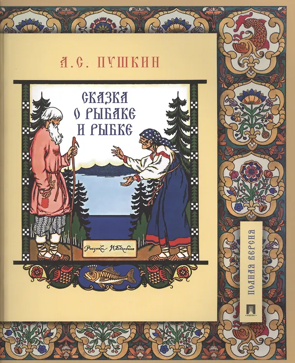 Издание содержит полный текст знаменитой сказки А. С. Пушкина ;О рыбаке и рыбке ; с восстановленным по авторской рукописи эпизодом о превращении старухи в ;римскую папу ;. В оформлении сказки использованы классические иллюстрации Ивана Билибина. Формат ;книги в книге ; поможет объяснить ребёнку значение неизвестных ему слов и выражений.