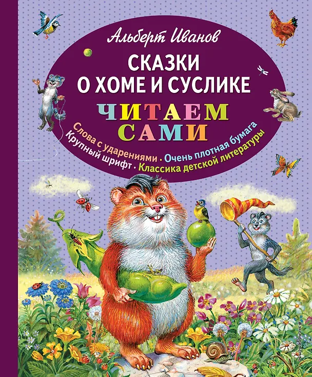 Милые и веселые истории про суслика и хочу, понравятся наверное всем детям. Если не уверены – можно прослушать сказки, это своеобразная классика, поэтому прочитать и ознакомиться думаю можно везде, но нам хотелось именно такую книгу заполучить. Иллюстрации не самые интересные, думаю есть книги и более качественные (и их много!), так тут надо выбирать. Произведений из историй конечно не так много, весьма выборочно сделана книга, но это совсем детский вариант, наверное можно сказать для малышей, хотя для малышей я бы взяла другие картинки.