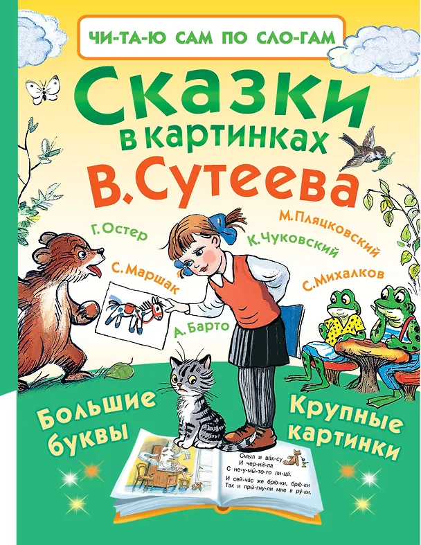 Сказки в картинках. Самые знаменитые сказки Григория Остера - котенок гав, 38 попугаев, про зайчика. Мы до этого вот дня не читали, но мультики смотрели с дочкой и очень любим, и она и я. Решили, что уже и почитать по них пора- заказали эту книгу. Доставили ее быстро, что приятно,и само издание порадовало. Яркие картинки, классические, сказки само собой интересные. Читаем сразу по несколько, они не длинные, дочка в восторге.