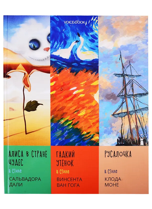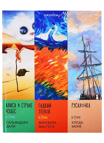 В альбом входят переложения любимых сказок – «Алиса в стране чудес», выполненная в манере Сальвадора Дали, «Гадкий утенок» в стиле Винсента Ван Гога и «Русалочка», в иллюстрациях к которой творчески переработаны работы Клода Моне.