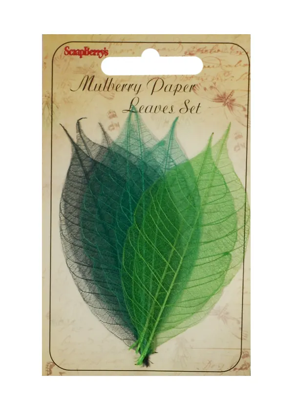 Скелетированные листочки из каучукового дерева, набор 8 шт, оттенки зеленого