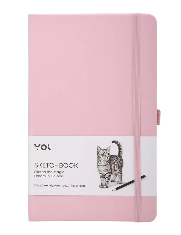 Спокойная нежность для вашего творчества! Вертикальный скетчбук с розовой обложкой станет отличным пространством для первых штрихов и проработанных рисунков. Внутри 80 листов из плотной бумаги цвета слоновой кости, которая идеально подходит для линеров, цветных и графитных карандашей. Такой скетчбук легко поместится в любой сумке, а его твёрдая обложка надёжно защитит ваши творческие работы от загрязнения.