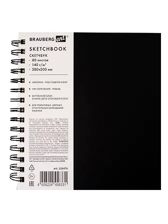 Скетчбук BRAUBERG ART "CLASSIC" для эскизов и графики. Внутренний блок – специальная художественная бумага цвета "слоновая кость" с гладкой фактурой. Предназначен для работы с широким спектром графических материалов (уголь, соусы, карандаши и прочие).