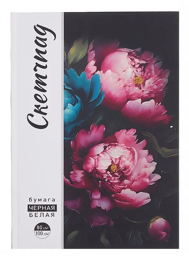 Скетчбук А5 48л "ЯРКИЕ ЦВЕТЫ" черн. внутр блок 70 г/м2, белый внутр блок 100 г/м2, тв.обложка, мат.ламинация