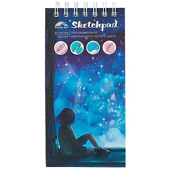 Сам скетчбук с очень твёрдой и плотной обложкой, юлагодаря чему можно рисовать прямо на коленке.