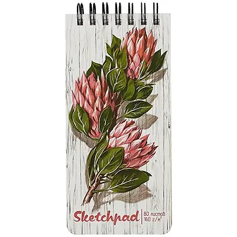 Скетчбук 105*220 80л "Розовый цветок" белый офсет, 160г/м2, тв.обложка, широкая евроспираль