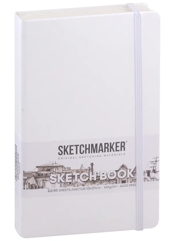 красивый) обтянут материалом по типу кожи с небольшим рельефом, имеется ленточная закладка напоминающая шелк, есть держатель для ручки и эластичная застежка похожая на резинку. Сама бумака очень высокого качества, плотная, цвета слоновой кости. Рисовать на такой бумаге одно удовольствие, она не просвечивает, не промокает и не отпечатывает материалы с обратной стороны. Во вкладыше указано что можно рисовать карандашами, пастелью и даже углём и чернилами. Я использовала перманентные маркеры и классические, которые сильно пропитаны, и бумага справилась на ура! если рисовать карандашами то можно использовать обе стороны одного листа.Размер скетчбука 13на21см что очень удобно хорошо поместиться в сумочку и удобно будет взять на пленэр)вообщем мне очень нравиться, рекомендую для творческих натур и на подарок!