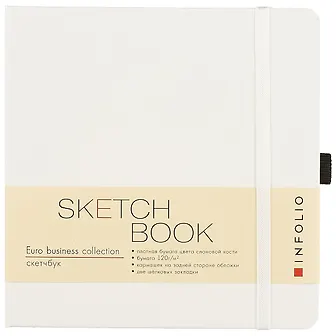 Скетчбук 15*15 128л "Euro business" ,белый, тв.переплет, резинка, резинка под ручку, двойное ляссе, In Folio