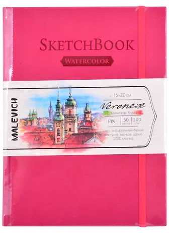 Скетчбук прекрасно подойдет для любителей акварельной живописи. Внутренний блок - 50 или 40 листов из двусторонней бумаги для акварели Veroneze Fin, 25% хлопка, 200 г/кв.м. в книжном переплете позволяют выбирать формат рисунка от одной страницы до разворота двух страниц. Резинка позволяет не только сохранить работы, но и обеспечивает функциональное удобство. Ск